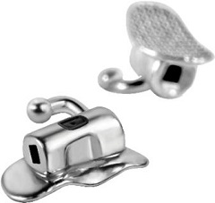 2、粘接型頰面管:近中向弓絲入槽口為導(dǎo)入槽設(shè)計,便于弓絲入槽;牽引鉤末端光滑,減少對軟組織的刺激;網(wǎng)底凹形弧度設(shè)計,與牙面更貼合。